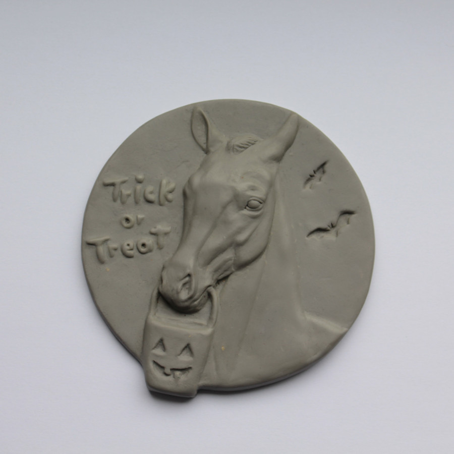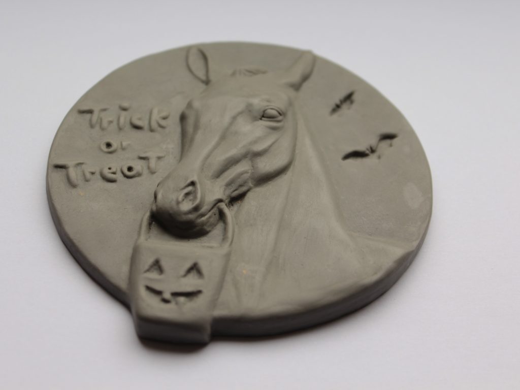 „Trick or Treat“ ist ein Warmblutfohlen nach eigener Fotografie, das mit seiner Verkleidung als Hexe auf seiner Jagd nach Süßigkeiten die nacht unsicher macht.